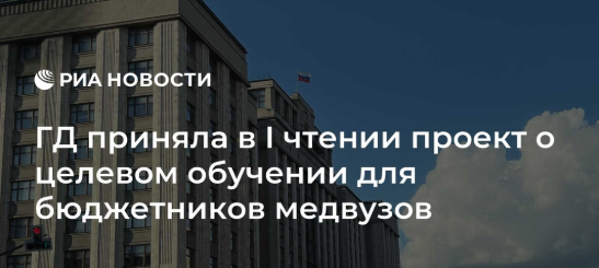 Госдума на пленарном заседании приняла в первом чтении законопроект об обязательном заключении договора о целевом обучении студентами высшего медицинского и фармацевтического образования, которые учатся на бюджетной основе.