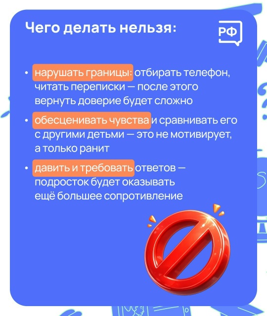 ️ Тревожный знак — когда ребёнок закрывается ото всех и сразу. Бросает увлечения, друзей и учёбу. Здесь важно выяснить, что послужило причиной. Например: